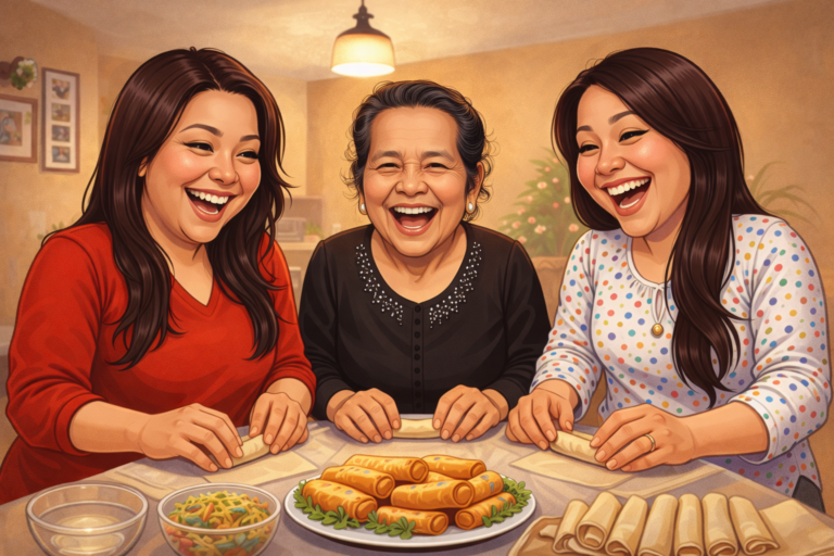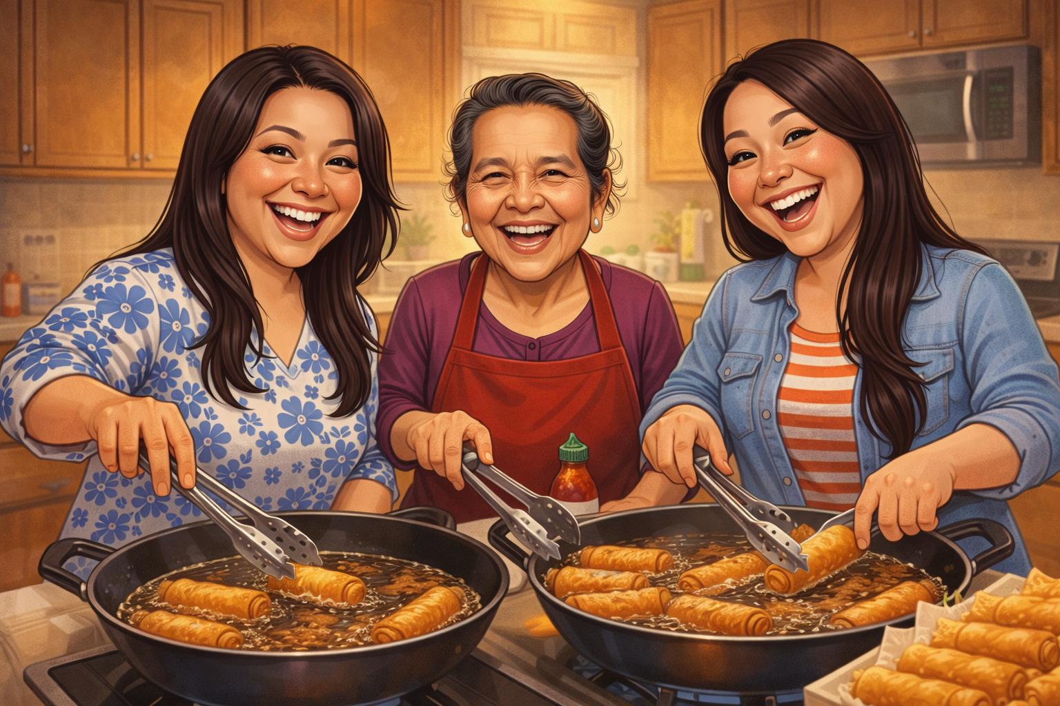 The eggroll wraps would come stuck together in a tight stack, and before anything else, they had to be carefully peeled apart one by one. That was usually where my sister and I came in. We’d stand at the counter helping our mom separate the delicate wrappers without tearing them. It sounds simple, but even that required patience. Then came the real test: rolling. The eggroll had to be a certain size. Tightly wrapped. Evenly filled. Never lopsided Sealed just right. It had to be “pretty.” Mom approved. My sister caught on quickly. By her early twenties, she had it down…smooth, tight, perfectly shaped eggrolls that earned immediate approval. Me? It took a little longer. Actually… a lot longer. I didn’t get “mom approved” on my rolling until I was in my thirties. Before that, she would glance at mine, politely quiet… and then wait for my sister to show up to help with the real wrapping. I’d be standing there fully available, and somehow I’d still end up on wrapper-peeling duty. We laugh about that now.
